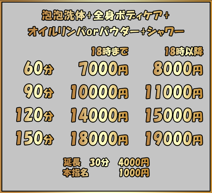 | 待遇 | 完全全額日払い制 優しく笑顔でお客様に接客できる方、おしゃべりが好きな方。 出勤後に一時外出することもできます。 指圧整体等の経験者は優遇させていただきます。 |